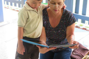 El 23 de abril, como parte de la celebración del día del libro, las niñas y los niños trajeron su libro de cuentos favorito al kinder para compartirlos con compañeras y compañeros. Para leer los cuentos se invitó a personas adultas de las familias, lo que permitió la interacción de la población infantil con abuelas, abuelos, tías, madres y padres en un espacio en el que la animación de la lectura propició la manifestación de diferentes expresiones artísticas como: la recreación de personajes de cuentos, imitaciones, dibujos, canciones y la creación de nuevas historias a partir de las ilustraciones de los libros.